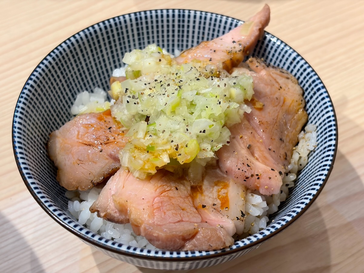投稿日: 2025年11月1日2025年11月1日 投稿者: Yuta Akama長男、もんたいちおの炙りチャーシュー丼 「長男、もんたいちお」の「炙りチャーシュー丼」は、香ばしく炙ったチャーシューが柔らかく、とてもジューシーな味わい。酸味の効いたネギに、黒胡椒がピリッと効いているのがアクセントです。 特にネギが香ばしくて大変美味で、ごはんに良く合います。つけ麺後の”締め”として満足度の高い逸品です。 Share