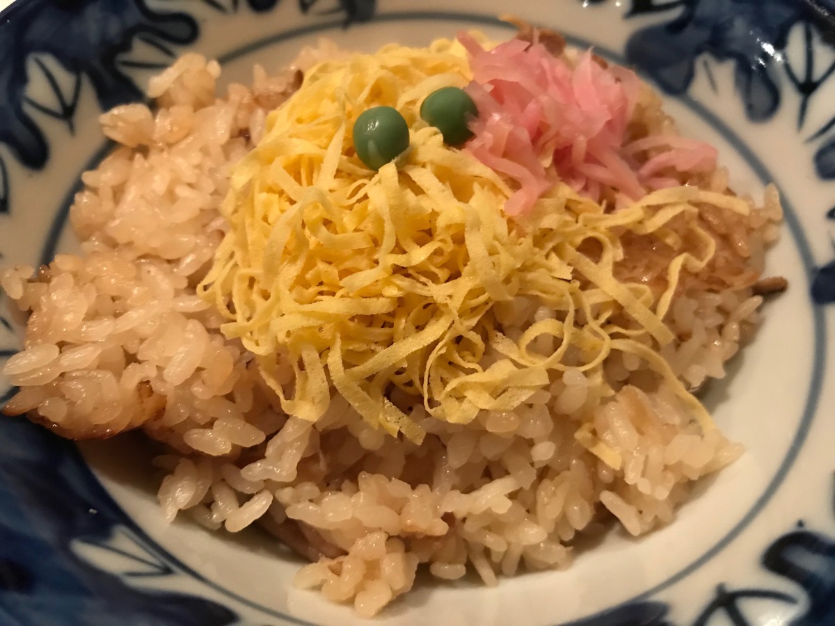 投稿日: 2018年5月25日 投稿者: Yuta Akama骨付鳥一鶴横浜西口店のとりめし とりめしは、鶏肉、錦糸玉子、生姜、グリンピースの入った炊き込みご飯と鶏だんご入りのスープのセットです。 骨付鳥のインパクトに比べると大人しい印象のメニューですが、骨付鳥と一緒に食べると何杯でも食べられます。 Share